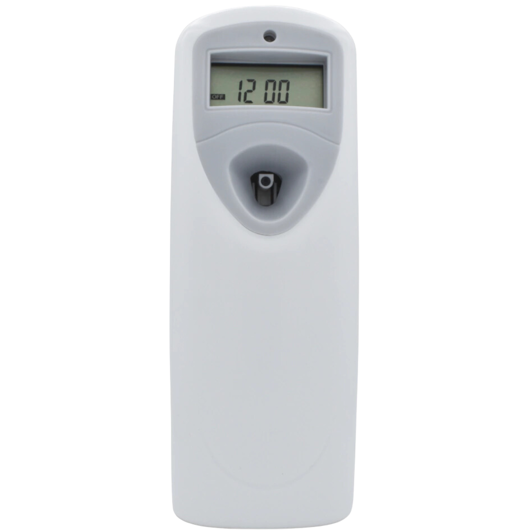 Aromatizador digital programable que permite ajustar los intervalos de pulsación y los días de la semana. Funciona con 4 pilas AA (no incluidas).