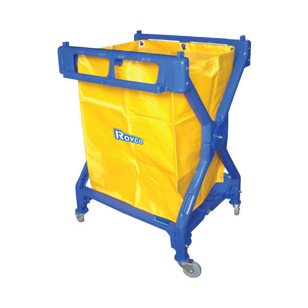 Carro Tijera Plegable con bolsa. Se utiliza en lavandería para la recolección de toallas y sábanas sucias. Fácil de guardar por su sistema de plegado. Ruedas giratorias Ideal uso en hotelería.