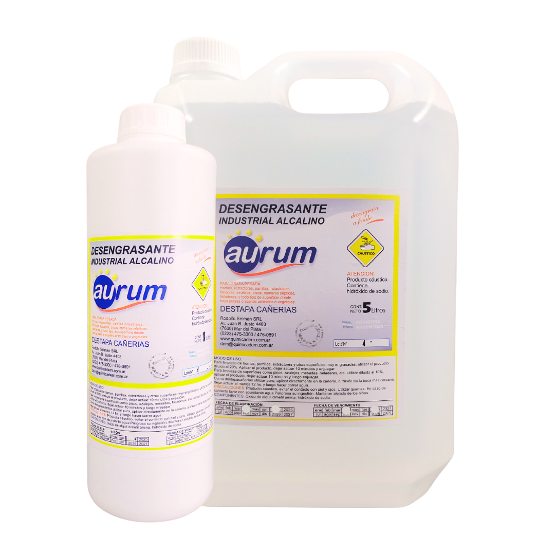 Potente desengrasante de uso industrial para grasa pesada. Destapa cañerías. Ideal para la limpieza de hornos, extractores, parrillas industriales, freidoras, azulejos, pisos, cámaras sépticas, etc.