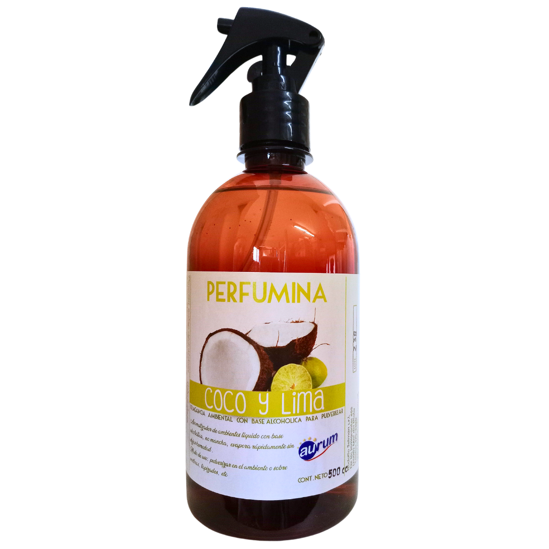 Fragancia ambiental con base alcohólica con pulverizador varios aromas. No mancha, evapora rápidamente sin dejar humedad.