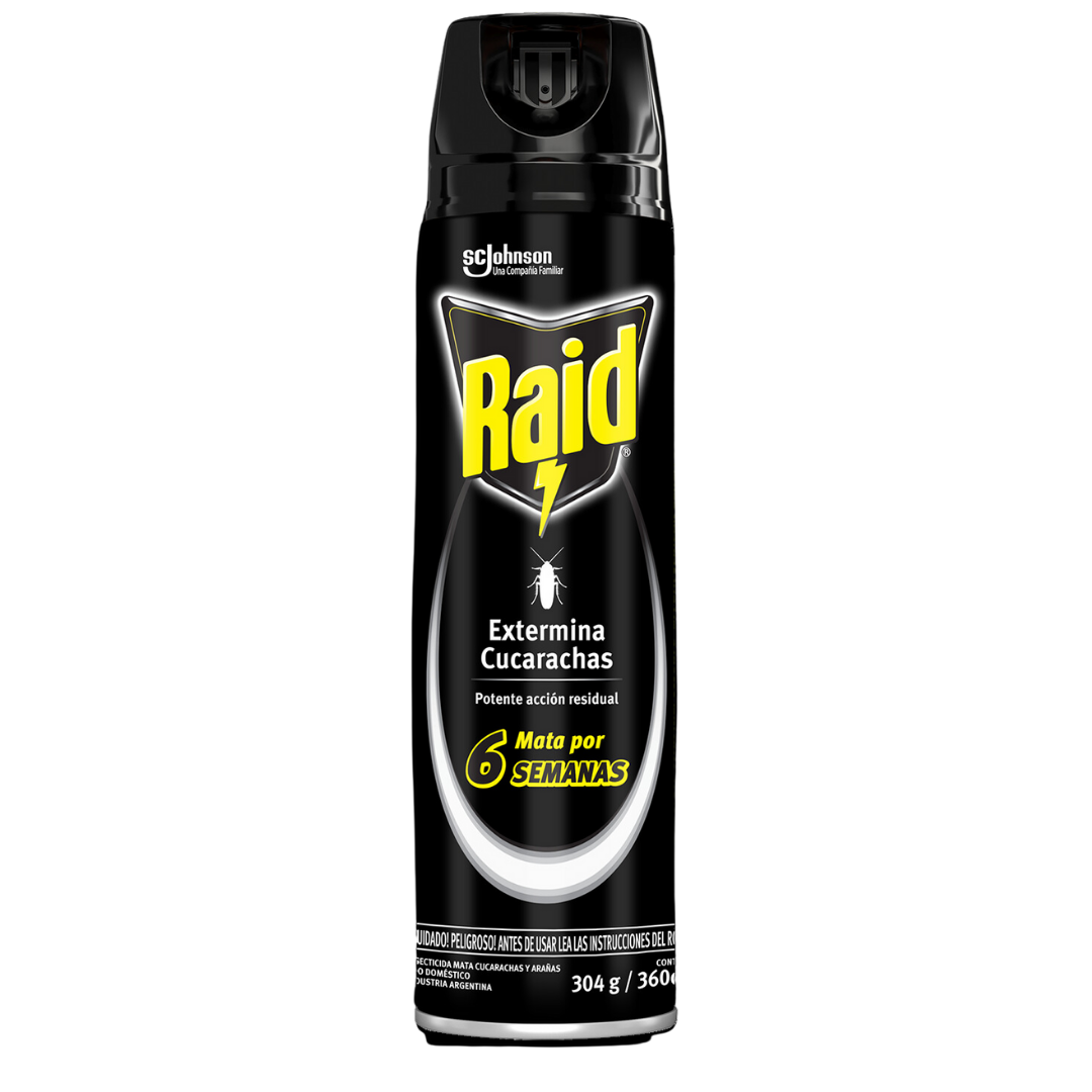 Raid Extermina Cucarachas también mata arañas, hormigas, escorpiones y alacranes. Los mata instantáneamente y continúa actuando por su potente efecto residual por 6 semanas más en superficies no porosas y 2 semanas más en superficies porosas.