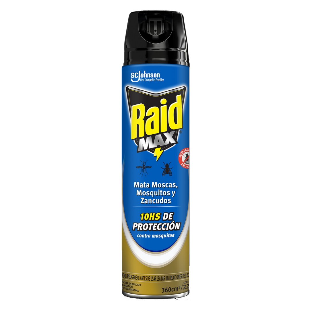 Raid Max brinda una solución más completa ya que mata las moscas y mosquitos en el acto y además las sigue matando por 10 hs. Su avanzada fórmula con acción prolongada permite mantener a los insectos alejados por más tiempo.