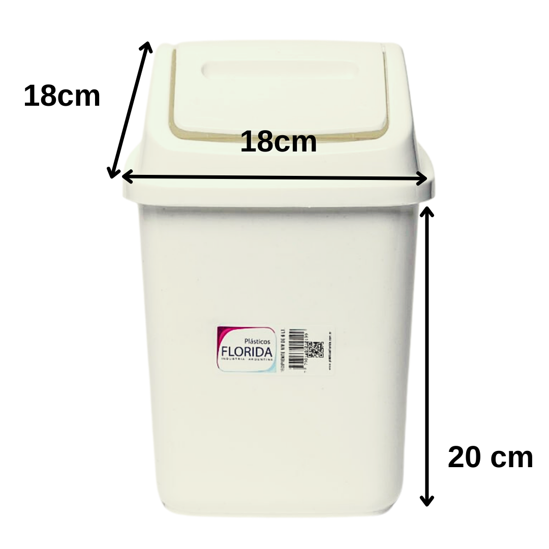 Recipiente cuadrado para residuos con tapa vaivén. Colores sujetos a disponibilidad.